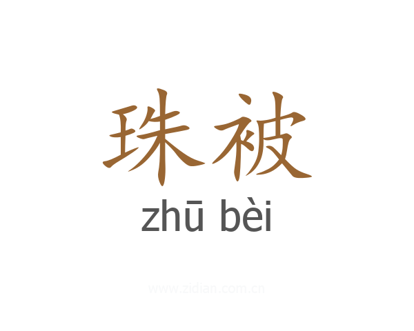 《楚辞·招魂》:“翡翠珠被,烂齐光些。” 南朝 梁 萧子范 《望秋月》诗:“入帐华珠被,斜筵照寳瑟。” 唐 李暇 《碧玉歌》:“珠被玳瑁床,感郎情意深。” 宋 钱惟演 《明皇》诗:“枉是金鸡亲便坐,更抛珠被掩方床。”